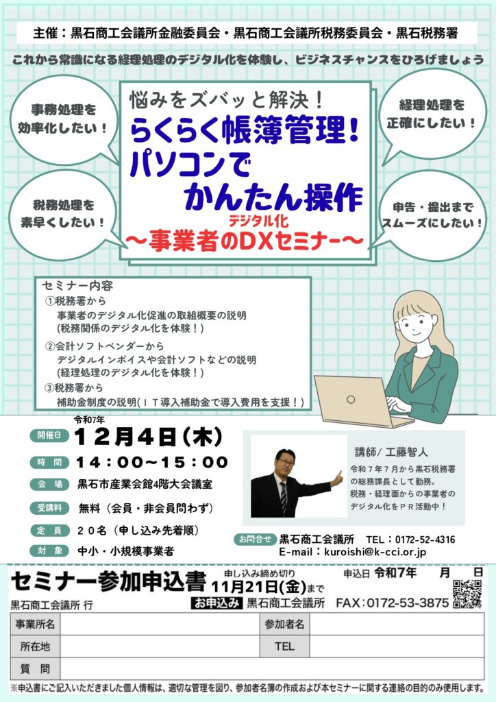黒石商工会議所について経営支援共済・保険検定試験 お知らせ入会についてお問い合わせ議員専用ページ 検索 ピックアップ記事 らくらく帳簿管理!パソコンでかんたん操作~事業者のDXセミナー~のお知らせ LINE公式アカウント開設のお知らせ お知らせ 第16回 ラージボール教室のお知らせ2025年10月24日 「事業承継個別相談会・融資相談会」のご案内2025年10月24日 らくらく帳簿管理!パソコンでかんたん操作~事業者のDXセミナー~のお知らせ2025年10月23日 黒石商工会議所 理財・情報産業部会『ITツール導入・販路開拓支援助成金』のご案内2025年10月17日 【ひろみち先生と2日間で学ぶ】全国親子体操普及員養成講座及び親子体操全国大会のお知らせ2025年10月14日 LINE公式アカウント開設のお知らせ2025年10月10日 もっと見る ≫ Instagram公式アカウント(kuroishi_cci)開設中 kuroishi_cci 黒石商工会議所のアカウントを開設しました🌼 当所で取り組む事業やイベント、黒石市内の観光情報など、皆様の役に立つ情報を随時発信して参ります🌟 公式ホームページはこちらから↓↓ もっと投稿を見る👉@kuroishi_cci ・ ・ もっと投稿を見る👉@kuroishi_cci ・ ・ もっと投稿を見る👉@kuroishi_cci ・ ・ もっと投稿を見る👉@kuroishi_cci ・ ・ もっと投稿を見る👉@kuroishi_cci ・ ・ もっと投稿を見る👉@kuroishi_cci ・ ・ もっと投稿を見る👉@kuroishi_cci ・ ・ もっと投稿を見る👉@kuroishi_cci ・ ・ もっと投稿を見る👉@kuroishi_cci ・ ・ もっと投稿を見る👉@kuroishi_cci ・ ・ もっと投稿を見る👉@kuroishi_cci ・ ・ もっと投稿を見る👉@kuroishi_cci ・ ・ もっと投稿を見る👉@kuroishi_cci ・ ・ さらに読み込む Instagram でフォロー author